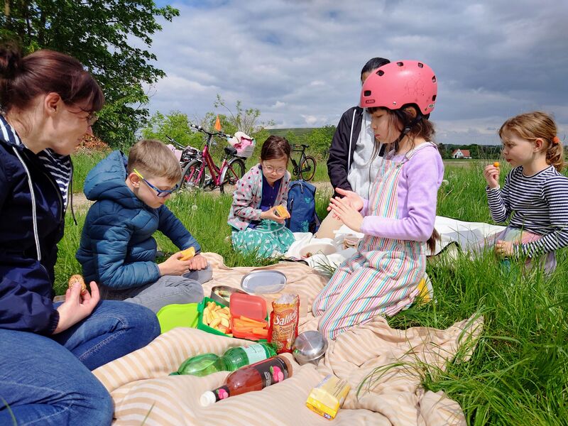 Für die Dauer der Predigt verteilte Pastorin Damaris Frehrking Papierblüten zum Bemalen an die Kinder. So konnten sie während des Bastelns lauschen, was Vikar Friedrich Neuhof über das Beten erzählte. Hört Gott mir zu? Hat er ein offenes Ohr für mich? Eine Frage für alle Altersklassen. Nach dem Gottesdienst machten sich die Bolzumer und Wehminger größtenteils per Rad auf den Heimweg und ließen den Vormittag bei einem Picknick ausklingen. Und demnächst schwingen sich die Sehnder Kinder auf´s Rad und singen im Wehminger Gottesdienst.